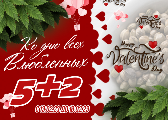 Акция будет проходить с 13.02.23 по 18.02.23. Отметьте этот день с нами, с нашим лучшим предложением ко Дню Святого Валентина на семена конопли высшего качества!