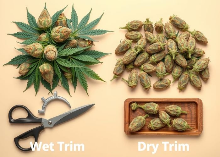 • Для коммерческого производства, где важно быстро подготовить большие объемы урожая к продаже, чаще используют мокрый тримминг, поскольку он ускоряет процесс сушки и упрощает автоматизированную обработку.