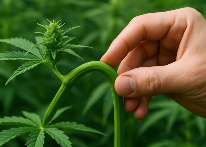 После начала бутонизации растение переходит в репродуктивный режим, и вся его энергия уходит на формирование соцветий. В этот момент любые сильные манипуляции — особенно связанные с механическим стрессом — могут нарушить гормональный баланс, замедлить развитие шишек и даже спровоцировать нежелательные мутации. В фазе цветения любые изгибы, надломы и перегрузки нежелательны. - Автоцветущие сорта.