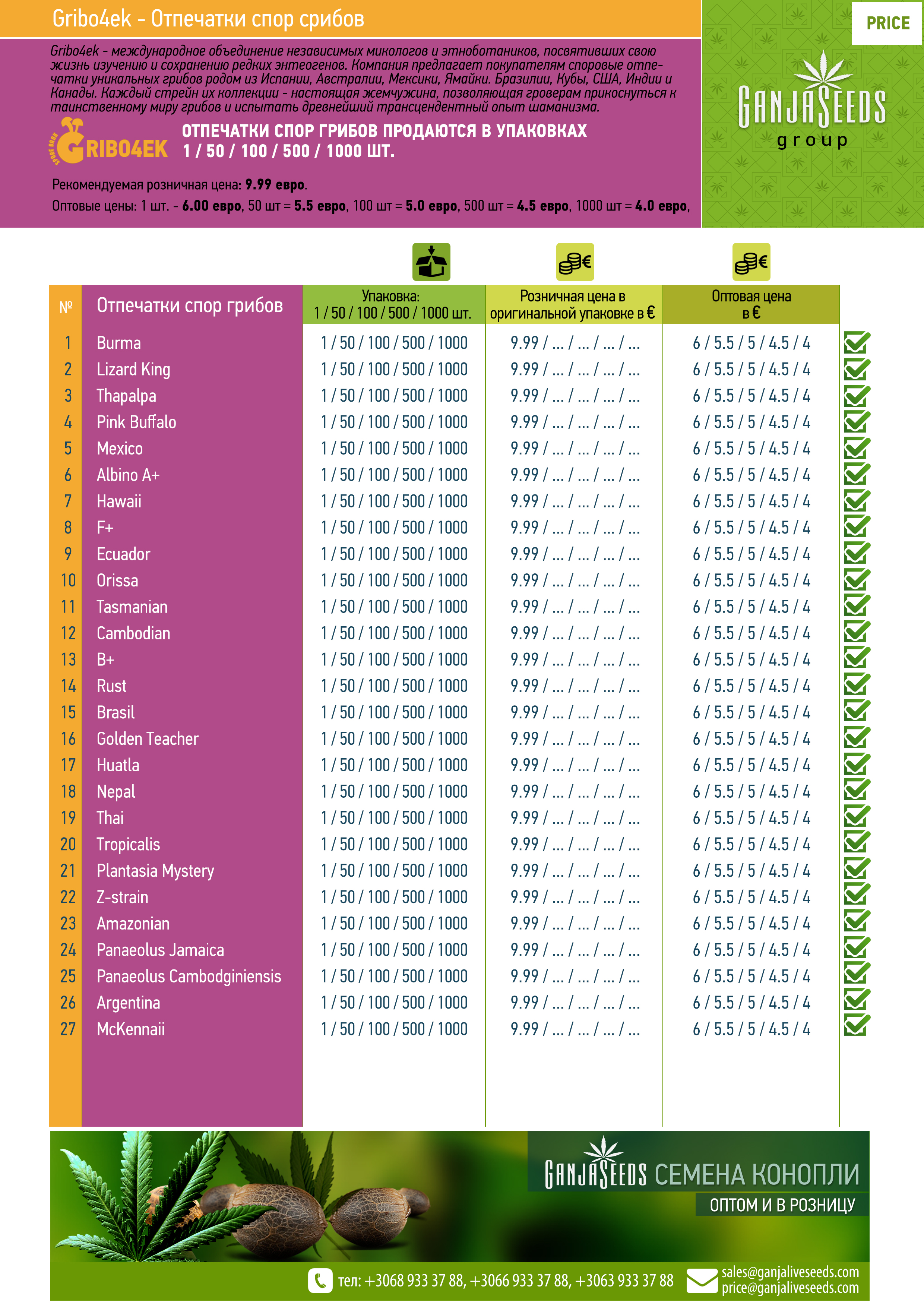 Оптовый прайс споровые отпечатки Gribo4ek